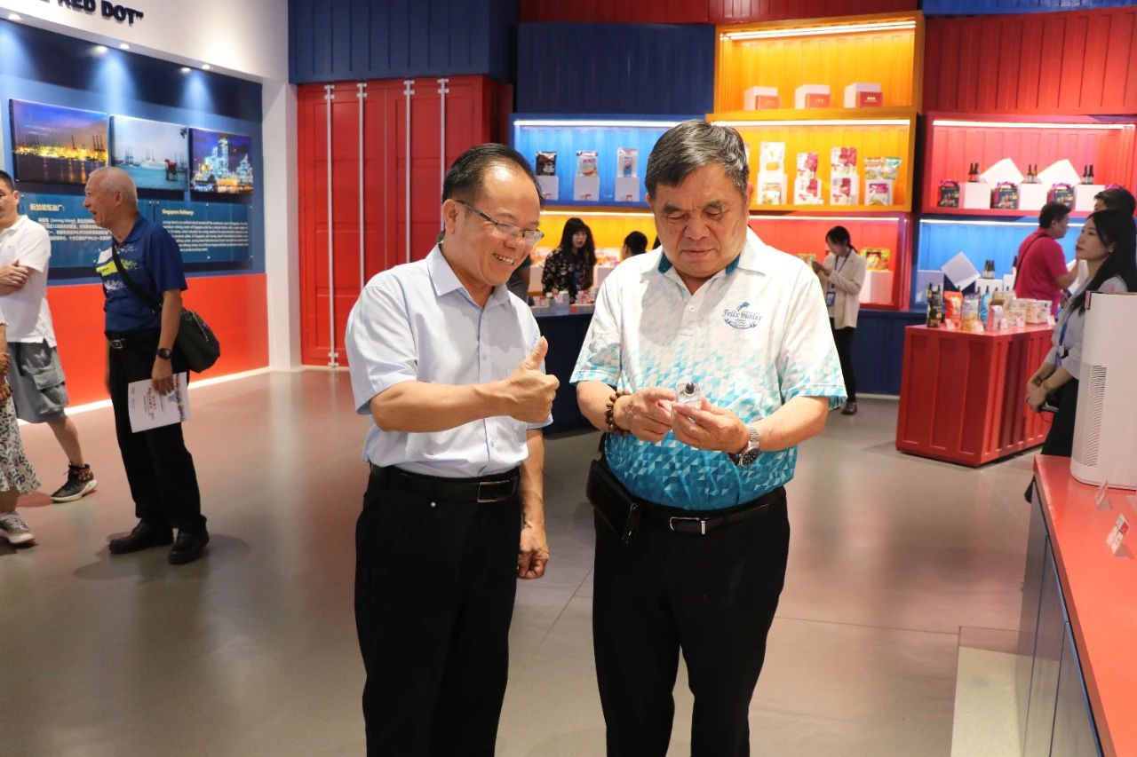 參訪團(tuán)一行在參觀匯聚中心線下主題展館過程中,對館內(nèi)琳瑯滿目的特色商品表現(xiàn)出濃厚的興趣,認(rèn)為匯聚中心創(chuàng)新理念非常出色,能夠通過線上下單快速配送一站式購買各式東盟、RCEP其他區(qū)域國家乃至“一帶一路”沿線重要國家的特色商品,比如新加坡的肉骨茶、印尼的咖啡、日本的清酒、澳大利亞的紅酒等,對商家及消費(fèi)者來說將是一種全新的沉浸式商貿(mào)體驗(yàn)。