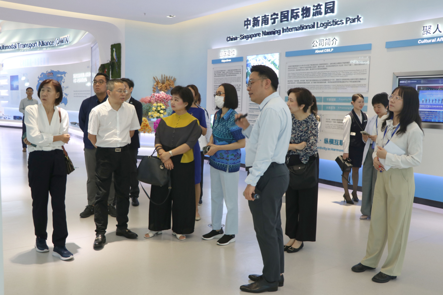 他們認為,廣西是面向東盟的開放門戶,構(gòu)建了全方位的“海陸空”物流網(wǎng)絡(luò),且路路通東盟。中新物流園以智慧物流為基礎(chǔ),不僅擁有新加坡太平船務(wù)集團在集裝箱海運及物流方面等資源,而且自身配套的大型物流倉儲和多式聯(lián)運等設(shè)施,為跨境貿(mào)易平臺及物流倉儲、多式聯(lián)運配送打造了規(guī)?;布涮谆A(chǔ),尤其是在國際陸海貿(mào)易新通道政策下,希望雙方可以加強物流方面的合作,為兩國人民帶來更多利益。