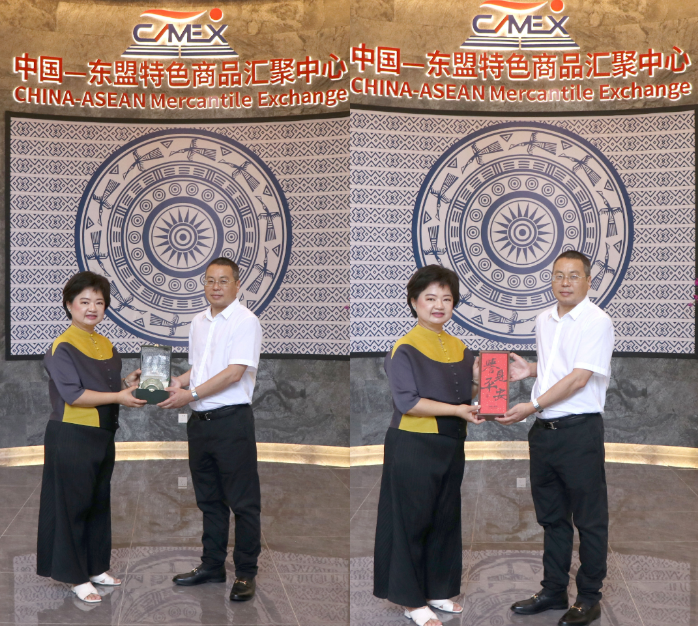 婉娜蓬·戈杜塔等泰國商業(yè)部巡視員、中國—東盟特色商品匯聚中心副總經(jīng)理盧春梅等陪同考察。