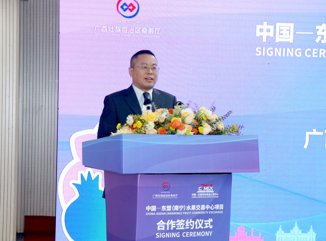 2023年11月9日,中國(guó)—東盟(南寧)水果交易中心項(xiàng)目合作簽約儀式在廣西壯族自治區(qū)商務(wù)廳舉行,標(biāo)志著項(xiàng)目合作取得實(shí)質(zhì)性進(jìn)展、項(xiàng)目建設(shè)步入新的發(fā)展階段。